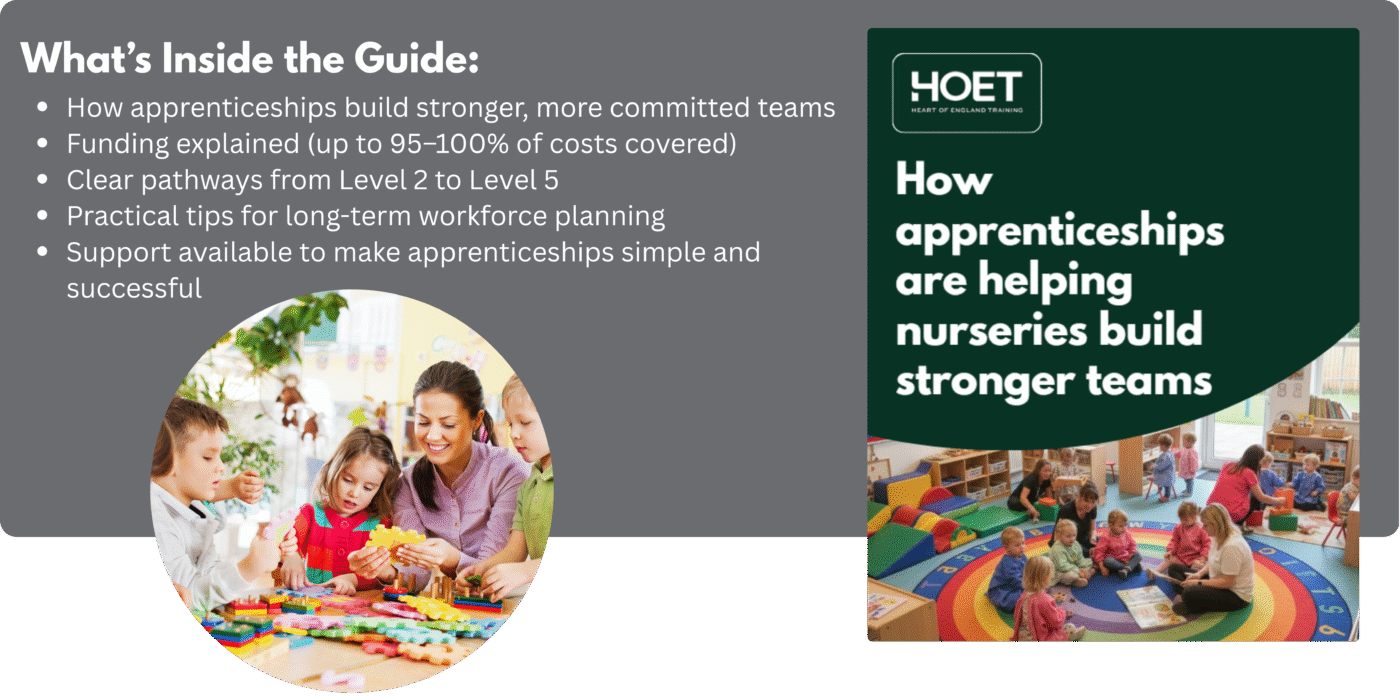 Fill in the form to access our free Nursery Leaders’ Guide to Apprenticeships and discover how Levels 2, 3 & 5 can help you grow and retain a skilled, passionate team.