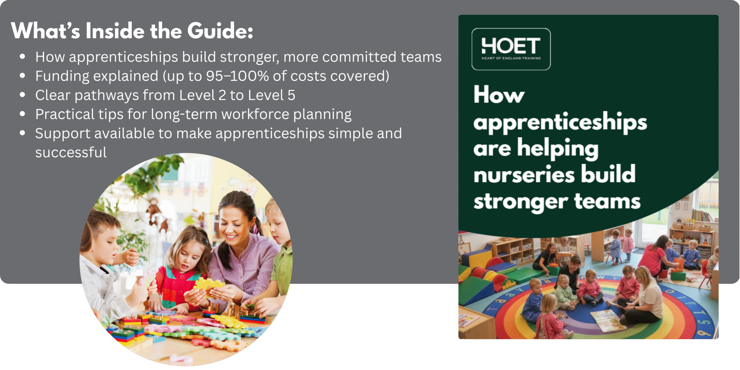 Fill in the form to access our free Nursery Leaders’ Guide to Apprenticeships and discover how Levels 2, 3 & 5 can help you grow and retain a skilled, passionate team.
